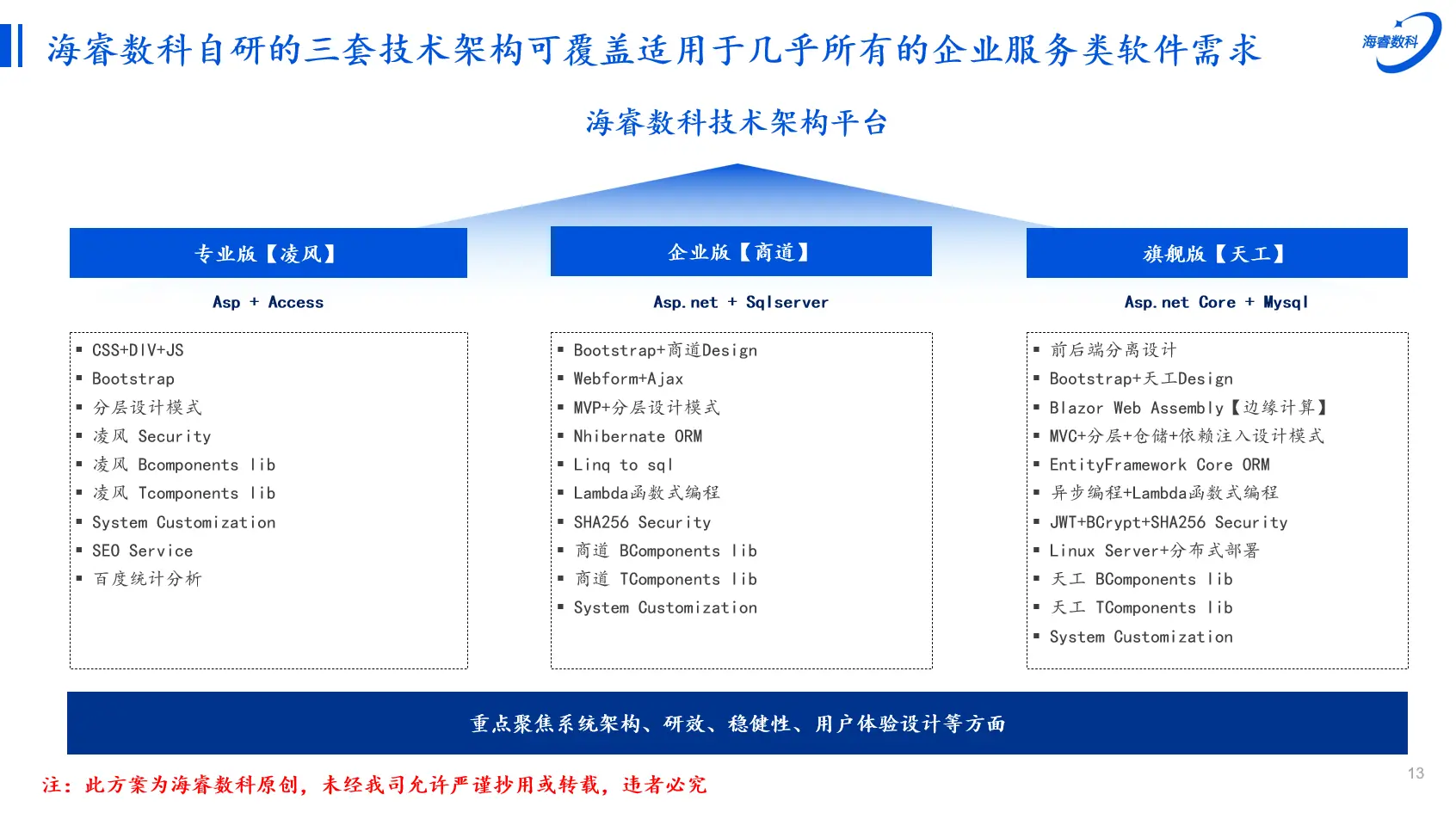 海睿数科天工坊自研的三套软件技术架构如下: