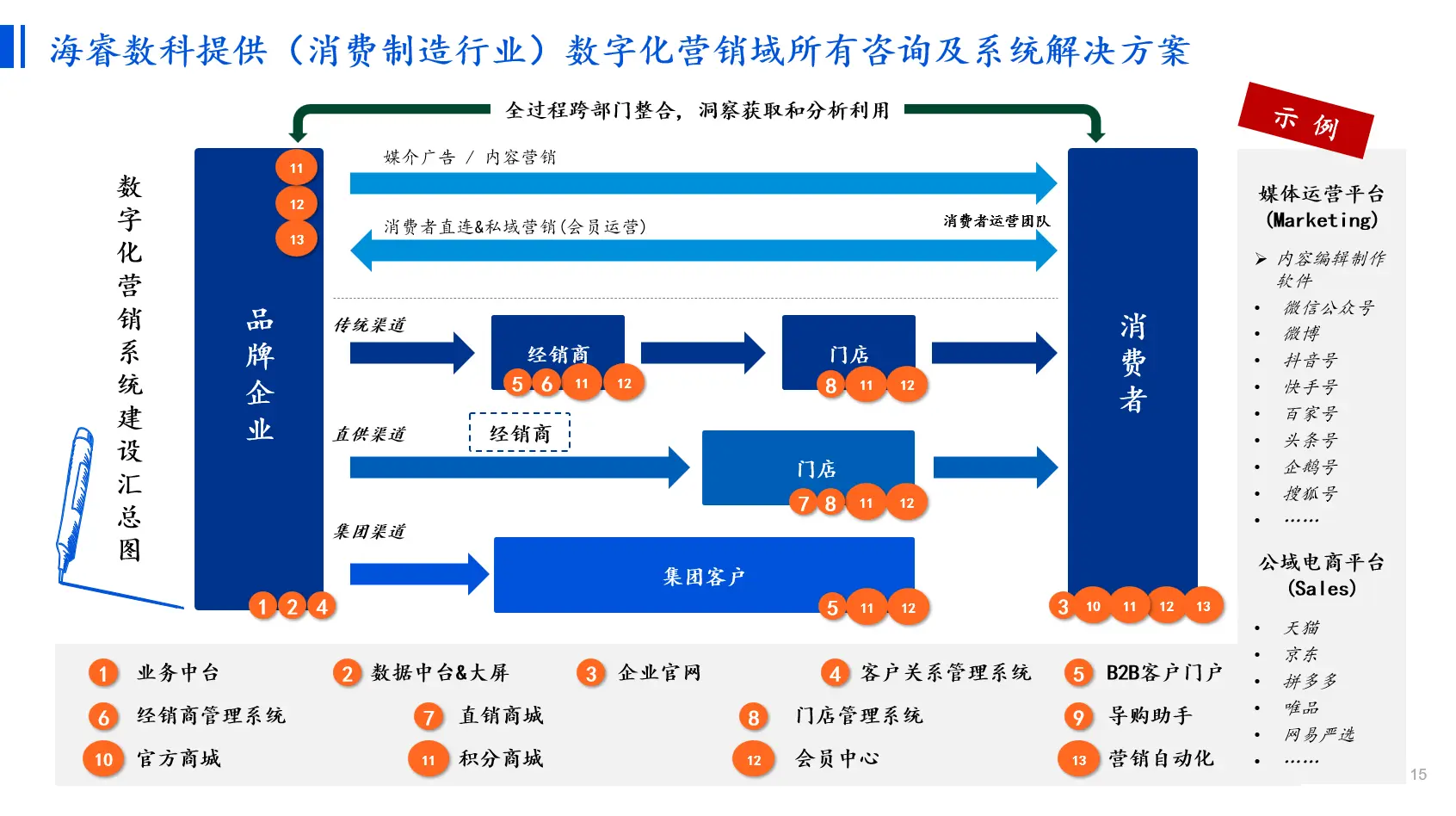 基于定制模式,为了达成最终共赢,海睿数科的服务原则是“不熟不做”或“不熟领域且业务复杂的不做”,现阶段只接消费制造行业数字化营销领域,或者其它相对不熟悉领域但经充分调研评估后觉得确实业务并不复杂的系统实施项目(如ITSM、HRM等),我司在数字化营销域的交付系统详细介绍如下: