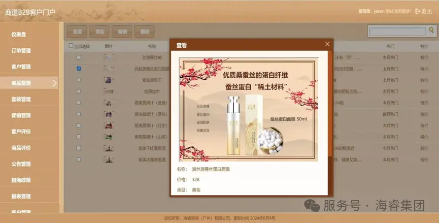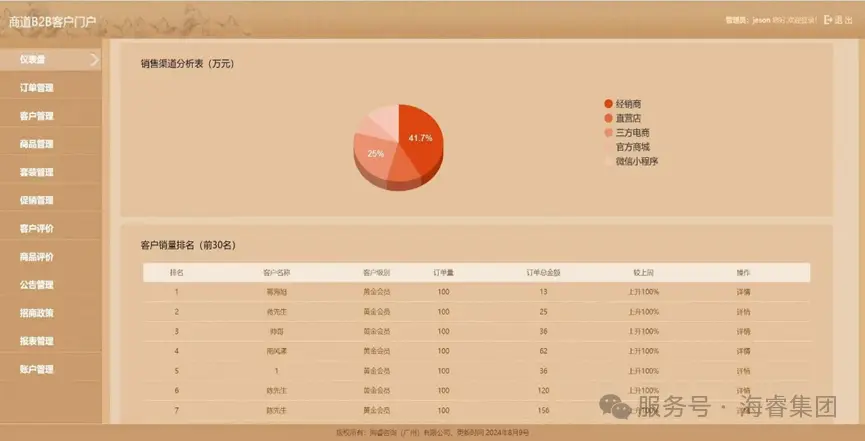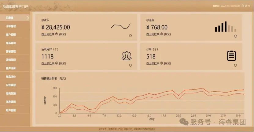 在数智化浪潮汹涌澎湃的当下,零售消费企业与经销商正积极探寻业务数智化转型的有效路径,商道B2B客户门户(B2BEShop)应运而生,凭借海睿“商道”技术架构、独具匠心的中国风设计以及强大完备的功能模块,脱颖而出成为两者业务数智化往来的强力赋能工具。