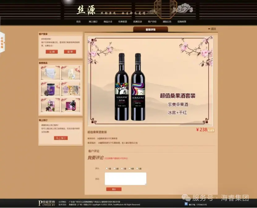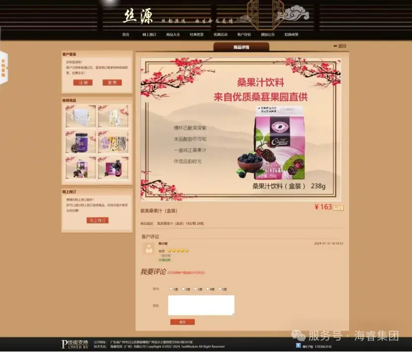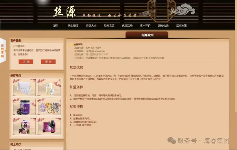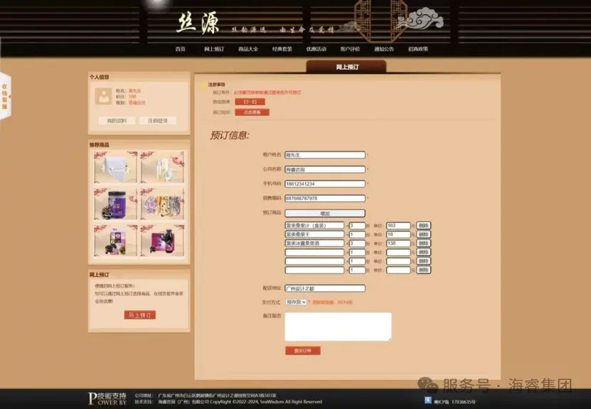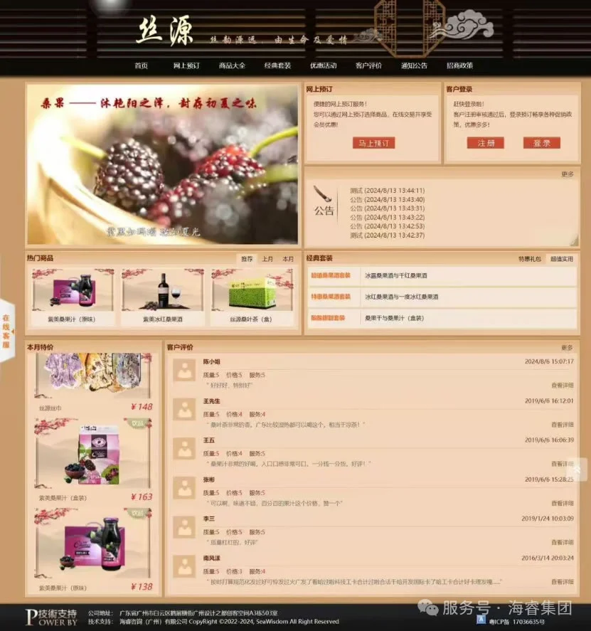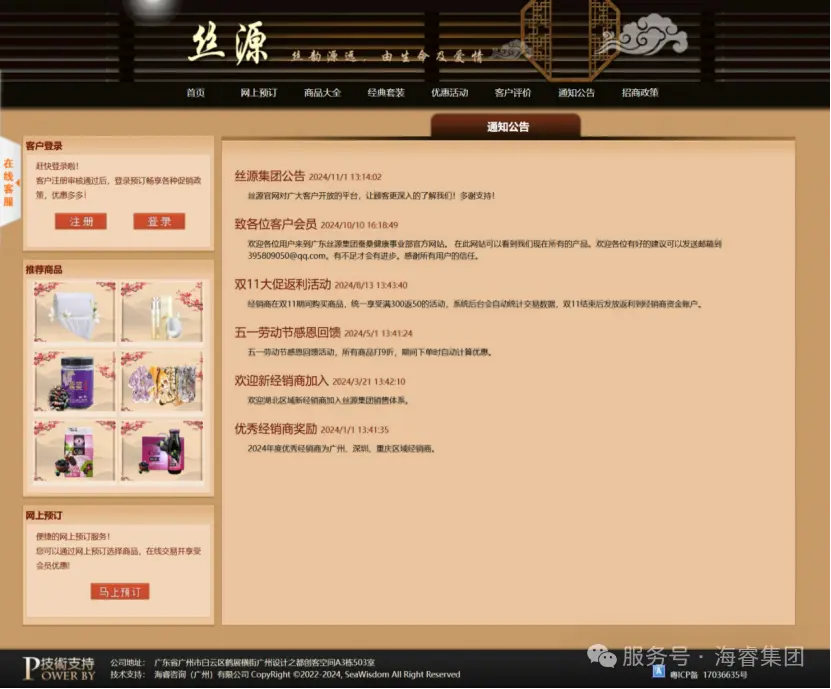 首页作为核心入口,以简洁大气的设计和清晰合理的布局,展示核心业务信息与最新动态,让用户一目了然,让经销商登录即可快速捕捉关键信息;网上预订功能,打破了时间与空间的限制,经销商可随时随地提交订单,极大提高了业务效率,支持批量下单与分仓配送选择,结合智能库存预警功能,避免经销商因信息滞后导致的缺货风险;商品大全板块按品类、规格、价格区间精准分类,搭配高清图文与参数对比工具,帮助经销商高效筛选适配产品;经典套装模块则整合热销组合方案,为经销商提供组合式采购参考,降低选品决策成本;优惠活动板块实时更新各类促销信息,激发经销商的采购热情;客户评价区汇聚真实合作反馈,成为经销商评估产品与服务的重要依据;通知公告及时传递重要信息,确保双方信息同步;招商政策模块清晰展示合作规则与权益,吸引更多优质经销商加入;会员管理系统通过积分体系与等级权益,激励经销商持续合作;后台管理则为整个平台的稳定运行与数据安全保驾护航。这些功能模块紧密协作、无缝衔接,全方位覆盖了企业与经销商业务往来的各个环节,为双方构建了一个高效、便捷、智能的数智化业务生态,推动业务持续健康发展。