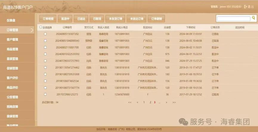 [后台订单管理页面]