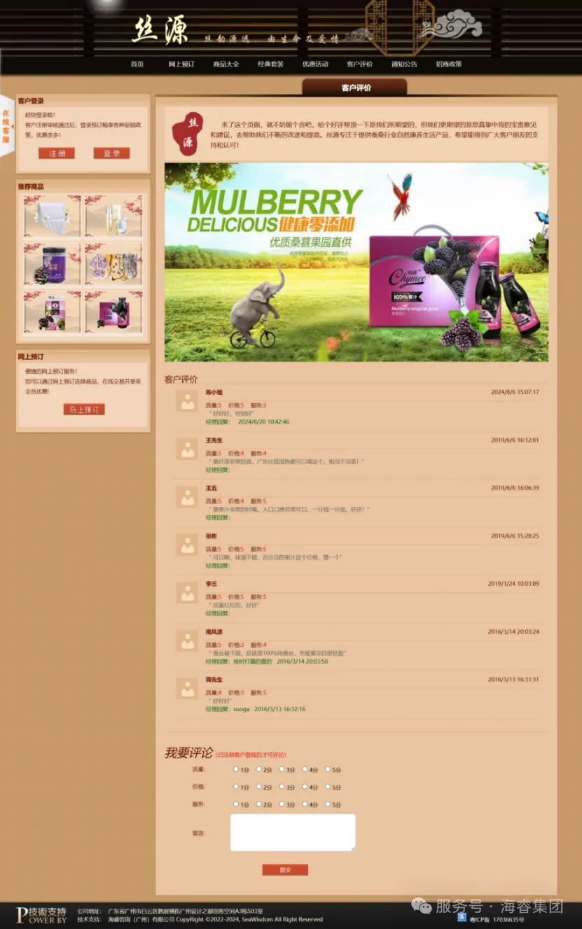 [前台客户评价页面]