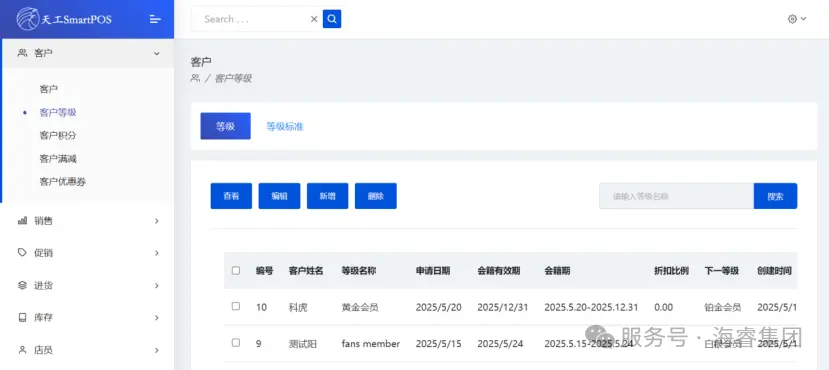 [客户等级管理页面]