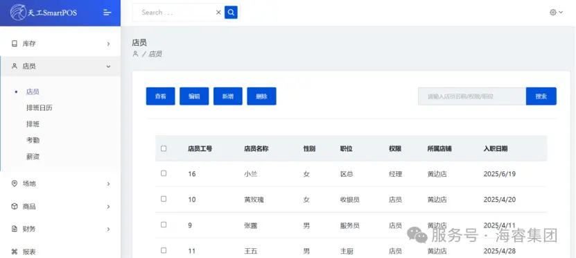 [店员管理页面]