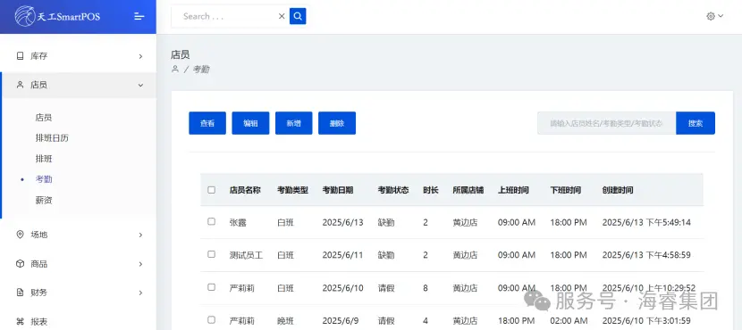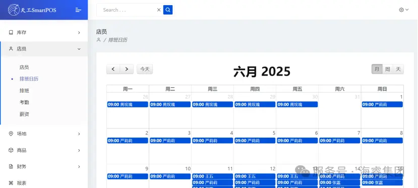 天工POS系统为企业提供精细化店员管理方案:支持多角色账号权限配置(如收银员仅限销售操作,管理人员可修改商品库存),确保数据安全;排班模块智能匹配门店需求生成月度班表,减少人工调度冲突;考勤模块实时记录出勤状态;薪资模块关联考勤、销售提成及满勤奖等规则,自动核算工资明细,实现全流程数智化管理,助力企业提升管理效率与人力成本管控水平。