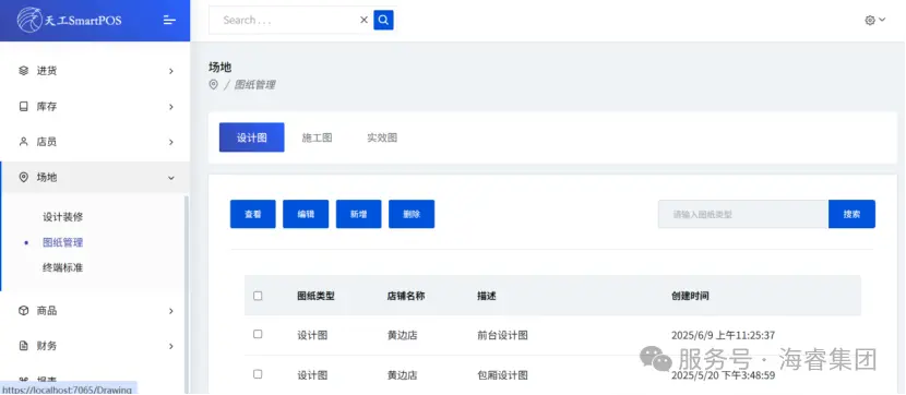 天工POS系统实现场地管理数智化:支持多类型装修记录,细分费用并关联金额精准核算成本;内置设计图多格式上传与版本管理;装修记录关联场地信息,可追溯历史,为场地维护改造提供数据支撑,提升资源利用率与管理水平。