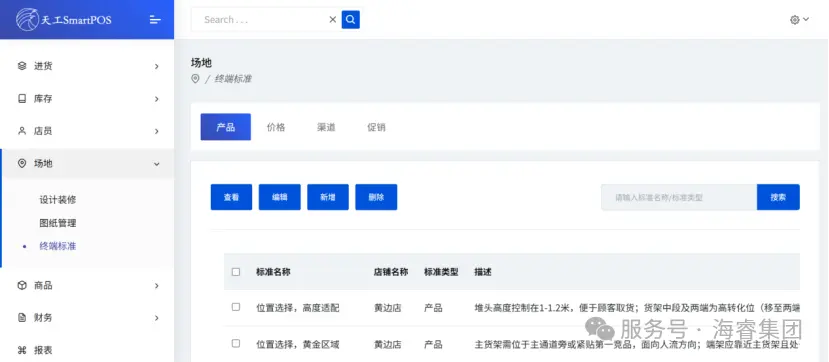 [终端标准管理页面]